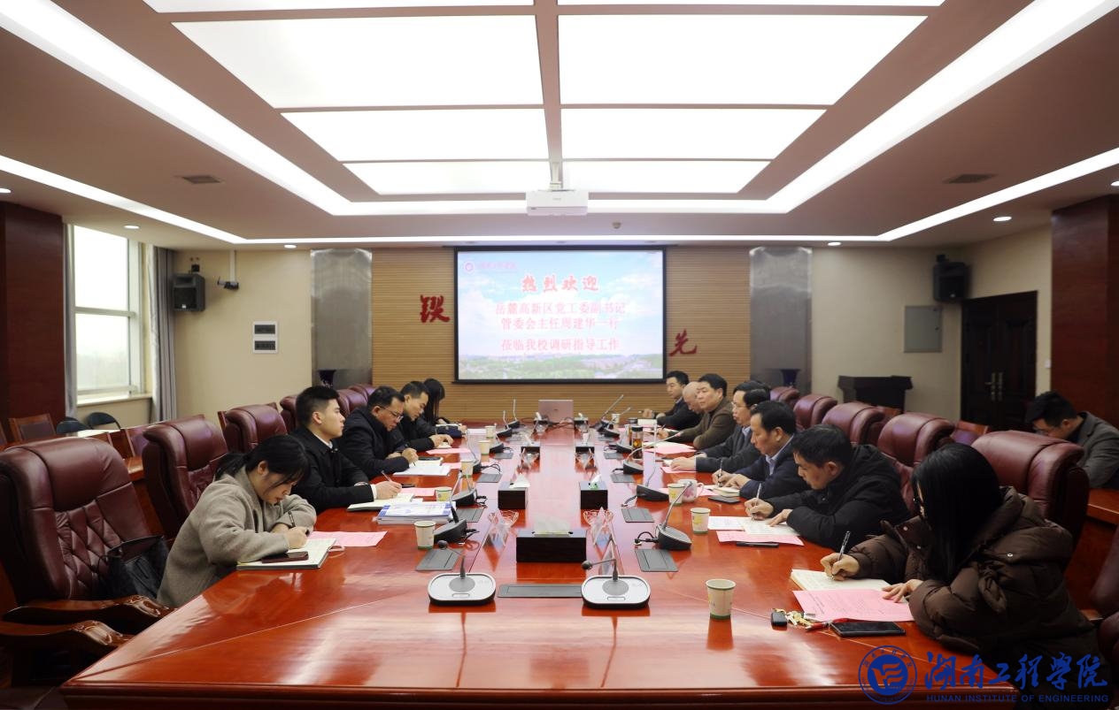 3月8日上午,长沙岳麓高新区党工委副书记、管委会主任周建华,党工委委员、纪工委书记林长茂,经济合作局局长周源毅、产业发展局常务副局长段浪、经济合作局高级招商经理刘佩瑶一行来beat365交流洽谈合作事宜。校党委书记黄昕,校党委委员、副校长魏克湘在电气楼311会议室接待来宾。双方就合作事宜展开深入交流。