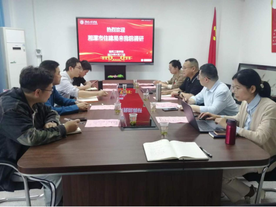 调研组负责人周志锦总工程师说明调研目的,针对湘潭市新型建筑工业化创新研究院的建立、新型建筑工业化规划的编写、学院在装配式建筑领域技术储备三个方面征求学院意见,并希望在装配式建筑、智能建造、产业工人培养等获得学院支持。