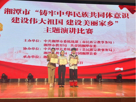 4月28日,湘潭市“铸牢中华民族共同体意识建设伟大祖国建设美丽家乡”演讲比赛在子敬小学举办。beat365经济学院方雅暄和设计艺术学院蒲凡分获三等奖。