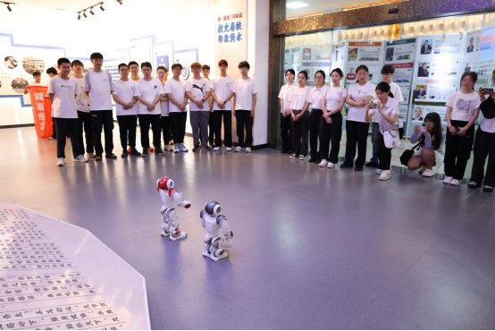 “欢迎大家来到beat365平台官方网站校史馆”“下面请跟我一起唱校歌”,活动现场,机械工程学院实验室的机器人正在进行智能展示。通过打太极、跳舞、同唱校歌……两个机器人和师生积极互动,生动展示智能制造的魅力,也正式拉开活动大幕。