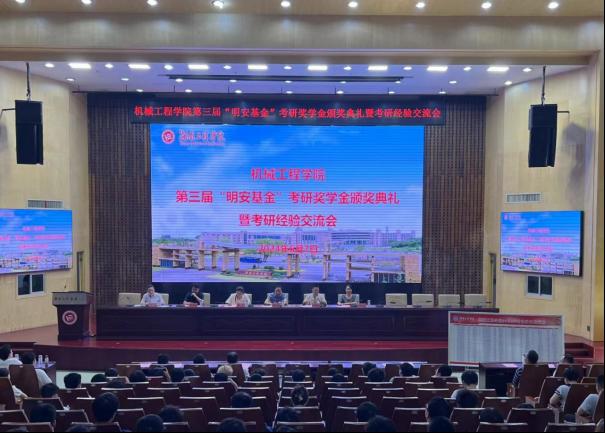 6月7日下午,机械工程学院在第一报告厅举行第三届“明安基金”考研奖学金发放仪式暨考研经验交流会。校党委委员、副校长魏克湘出席。学院党政相关负责人、全体获奖学生以及2021级学生参加活动。学院党委副书记李欣主持仪式。