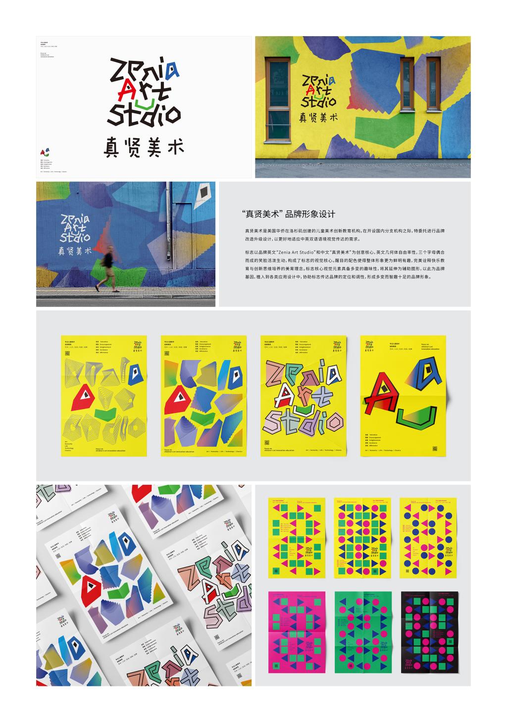 高淑君老师为洛杉矶美国华侨创建的“真贤美术”儿童美术创新教育机构设计升级了品牌形象,以更好地适应中英双语语境下的视觉传达需求。标志以品牌英文“Zenia Art Studio”和中文“真贤美术”为创意核心,英文几何体自由率性,三个字母偶合而成的笑脸活泼生动,构成了标志的视觉核心。醒目的配色使得整体形象更为鲜明有趣,完美诠释快乐教育与创新思维培养的美育理念。标志的核心视觉元素具备多变的趣味性,将其延伸为辅助图形,以此为品牌基因,植入到各类应用设计中,协助标志传达品牌的定位和调性,形成多变而智趣十足的品牌形象。