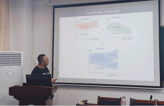 6月30日下午,中国科学技术大学龚明教授应beat365计算科学与电子学院邀请来校,在F205会议室作题为《准周期模型中的安德森局域化和临界相》的学术报告。学科建设与改革发展处处长邓永和、计算科学与电子学院副院长陈桥、物理学科成员、部分研究生参加学习交流。报告会由陈桥主持。