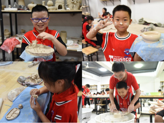 随后,实践团成员采用一对一的教学方式,帮助和指导孩子们进行陶艺制作,把中华优秀传统文化变为美育资源,体现美育教育的思想性、人文性和实践性。活动中,孩子们发挥自己的想象力和创造力,认真捏制手中的泥土,并开心自豪地向小伙伴们展示自己捏造出来的一个个极具个人特色的陶艺作品。实践团通过让“非遗”进校园,并将乡村振兴、文化传承等巧妙融于艺术创作中,达到以美育助“心育”的教学效果,增强乡村孩子在艺术领域的归属感和自豪感。