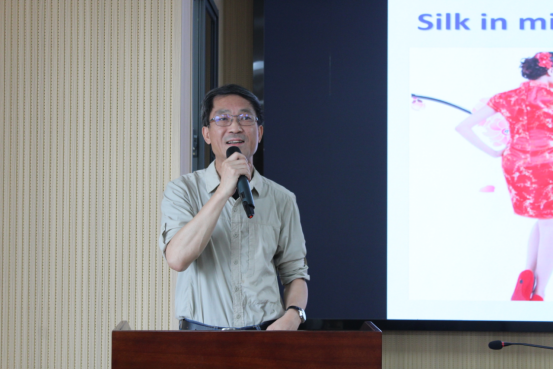 陈新教授从生物医药的角度出发,以“丝蛋白基材料在生物医药领域的应用”为题,详细介绍了丝蛋白基材料的独特性质及其在现代医疗中的应用。他通过一系列生动的案例分析,阐述了丝蛋白材料在药物释放等方面的创新应用。陈新教授的报告不仅展现了丝蛋白材料在提高治疗效果方面的巨大潜力,也为学院师生提供了探索高分子材料在生命科学中应用的新视角。