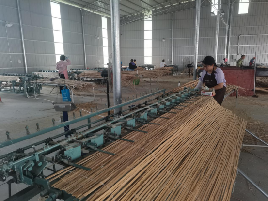 伴随着隆隆的机器轰鸣,一根根楠竹从机床上被截成段、切割成片,经过工人师傅筛选打磨,在流水线上很快被编织成一个个竹帘,送往了烘干室。会同县坪村镇铺坪村毛寨坳嘉恒竹类加工厂的粟永胜等负责人介绍了工厂竹产品裁料、开片、片蔑、编织、烘烤各个流程,并对乡村振兴驻村工作队多次向乡(镇)、县、学校领导汇报工厂建设进度,为解决生产过程中的难题、改进工艺流程、增加产品附加值、拓展销售渠道开展实质性的工作表示感谢。目前,竹产品加工厂日产竹帘1500张左右,日产值可达15000元,产品外销福建、山东、广西等地。