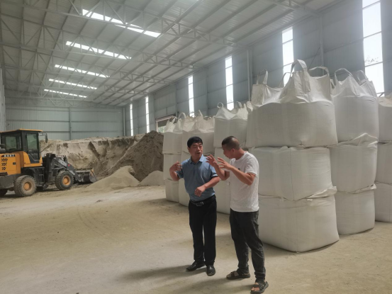 与竹加工厂紧紧相邻的是另一家企业:会同县嘉恒再生资源利用有限公司。厂房里铲车、叉车往来穿梭,机器马达声声,工人师傅正在加紧填料、分装。该公司主要以工业矿渣废料为原料,通过烘干、粉碎、分类等流程后进行包装,为涂料生产厂商供应原材料,将工业废料变废为宝。公司日产涂料基料100吨左右,该产品市场需求量大,效益明显。公司从2023年开始进行地面硬化、厂房建设、水电线路布设、调试设备。期间,驻村工作队与村支两委多次到现场了解情况,及时向上级领导汇报项目进展,积极与各职能部门负责人协调沟通,通过场地整改、加装设备等,使生产达到环保测评要求,直至正式投产。