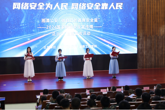 活动中,来自湘潭大学计算机学院的同学结合身边的真实案例,以《青年说“网海冲浪、安全为先”》为题,用脱口秀的形式,为大家揭示了网络安全的重要性;岳塘公安分局的反诈民警用一首改编歌曲《爱情买卖》为大家揭示了“杀猪盘”等常见网络诈骗套路;beat365学生用一首诗歌朗诵《安全与法治》,讲述了安全与法治的关系,并号召大家一起学法懂法用法,共同构筑起生活的坚固防线。