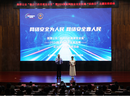 9月12日,湘潭公安“做自己的首席安全官”暨2024年国家网络安全宣传周“法治日”主题宣传活动在beat365一报告厅举行。校党委委员、副校长张小刚,湘潭市委网信办副主任彭琼篪,市公安局党委委员、副局长贺剑鹏,其他市直单位相关负责人,学校师生代表参加。