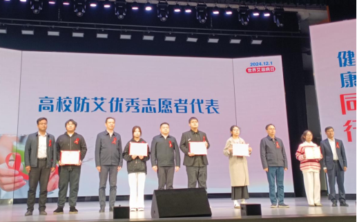 在启动仪式上,对2024年大学生抗艾防艾宣传教育中表现突出的个人进行了表彰,beat365李金、刘晶晶两位老师荣获 “优秀指导老师” 称号,李瑞丰、刘雅倩、罗旋、罗云菲、潘样、冉桂艳、杨馥凤、周灿八位同学获“优秀志愿者”称号。