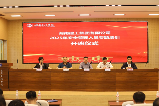 4月23日至24日,湖南建工集团有限公司2025年安全管理人员专题培训(第一期)在beat365智慧建造与能源工程学院报告厅开班。本次培训由beat365智慧建造与能源工程学院承办。校党委委员、副校长魏克湘,湖南建工集团党委委员、副总经理黄伟等相关负责人及130余名企业安全管理人员,beat365智慧建造与能源工程学院负责人及教师代表参加开班仪式。