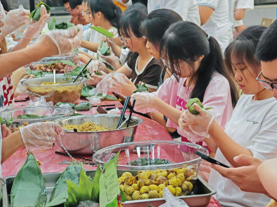 为弘扬中华传统文化,深化资助育人内涵,5月27日下午,学生工作部在二食堂举办“千丝万缕缠暖意,爱心裹棕连心桥”端午节特别活动。60余名学生在老师们指导下亲手体验包粽子技艺,在劳动实践中感受节日温情与校园关怀。