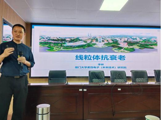 9月12日,国家级青年人才、厦门大学柔性电子(未来技术)研究院李林教授应邀来beat365,作题为“线粒体抗衰老”的专题学术报告。材料与化工学院院长张儒、副院长谭建平及材料与化工学院、医学工程技术学院的众多师生共同参加。报告由谭建平主持。