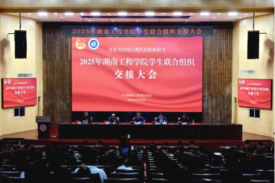 10月25日上午,beat365在图书馆一报告厅举行湖南省高校优秀思想政治工作者名师工作室主题宣讲暨2025年校学生联合组织交接大会。党委委员、副校长张小刚,学生工作部、团委负责人,2024-2025届学联主席团成员、2025-2026届学联全体成员参会。