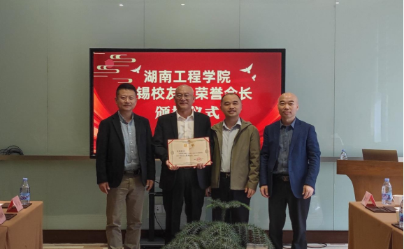 聘任仪式上,校友联络中心主任张宏、江苏校友会会长胡黎明、无锡校友会会长曾毅勇共同为电器8501班、无锡市优利康电气有限公司总经理李铁党校友颁发荣誉会长聘书。