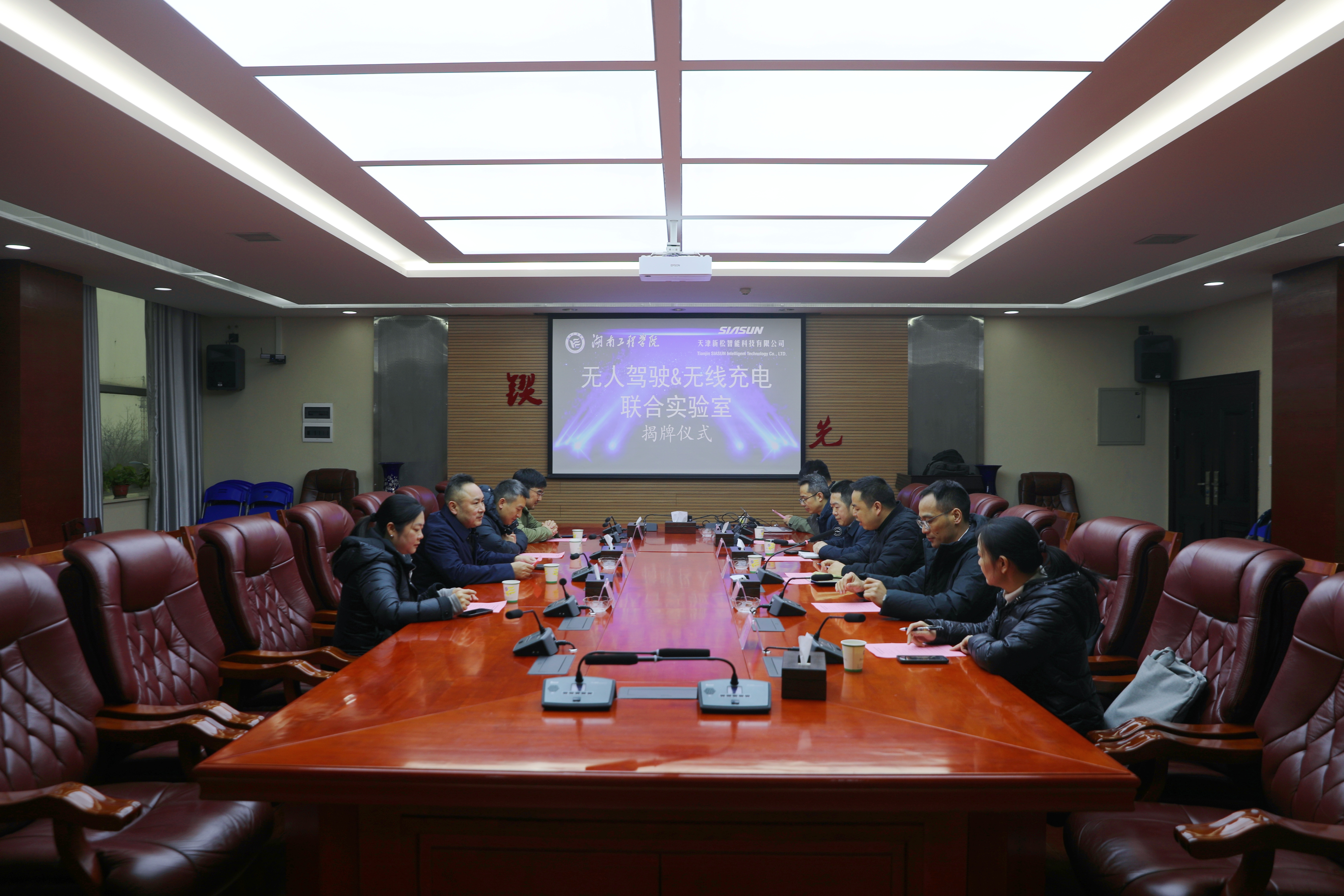 1月20日,beat365与天津新松智能科技有限公司(以下简称“天津新松”)共同建设的“无人驾驶&无线充电实验室”正式揭牌。揭牌仪式在电气楼311会议室举行,湖南省湘潭市科学技术局党组副书记、副局长金彪,天津新松总经理刘兵,beat365副校长陈燕东,科研管理处、智能科学与工程学院、电气与信息工程学院主要负责人以及相关教师代表参加。仪式由陈燕东主持。