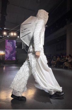 服装秀环节,模特身着充满创意和美学元素的各式服装逐一登场,服装风格或摩登时尚,或童话梦幻,或中国风格,或乡村田园,或科幻色彩,或生态环保,或武侠风采,现场五光十色、色彩斑斓,伴随着动感的音乐节奏,热力值不断攀升,一件件别出心裁、匠心独运的服装成衣设计作品赢得了观众们的惊叹。