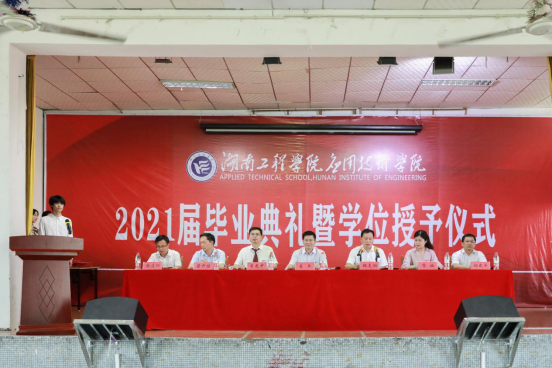 6月23日15:10,beat365平台官方网站应用技术学院2021届毕业生毕业典礼暨学位授予仪式在南校区一教四楼活动中心举行。校长易兵,副校长魏克湘,应用技术学院院长李光中,党委书记黎娅,副院长梁开健、胡武平,党委副书记陶连洲出席毕业典礼。典礼由魏克湘主持。