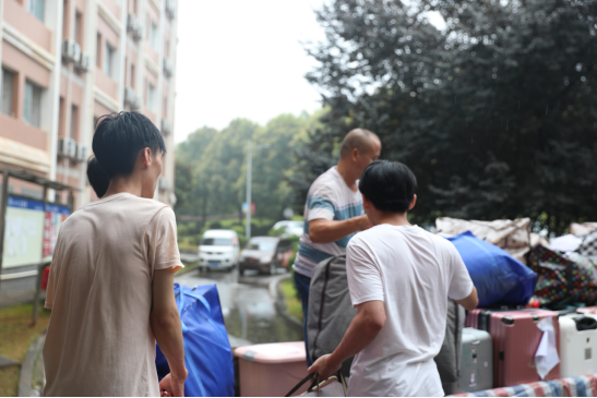 “学院全体领导、辅导员都到现场来了,帮我们搬行李。真的很感动。”7月4日早上,天空下着小雨,全校宿舍搬迁工作已经接近尾声。