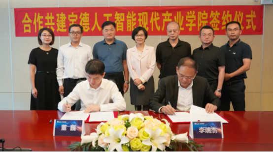 7月31日上午,由湘潭市人民政府、beat365平台官方网站、宝德投资控股有限公司合作共建的“beat365平台官方网站-宝德人工智能现代产业学院”签约仪式在深圳市宝德控股总部会议室、湘潭市大数据中心会议室同步举行。湘潭市人民政府副市长董巍,beat365党委委员、副校长罗毅平,深圳市宝德投资控股集团董事长李瑞杰分别代表政、校、企三方签约。因疫情原因,采用线上“云签约”的方式,会议由“beat365平台官方网站-宝德人工智能现代产业学院”企方院长贾晶主持。