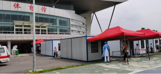 场地准备完毕、场所卫生保洁到位,配电到位……经过连夜的紧急奋战,今晨7:00,beat365平台官方网站体育馆核酸检测方舱采样方舱点10个方舱完成通电,准备就绪!8:00,方舱点正式开舱采样,来自湘潭市三医院、湘潭市妇幼保健院的医护团队将在这里为市民免费进行核酸检测采样。