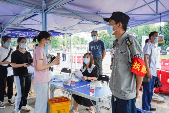 “请同学们按照地面图标,间隔一米,打开健康码和行程码,有序进入校园……”校门是学校疫情防控第一道关口,学校正大门设置了体温复测、应急处置点和临时隔离点等区域。现场工作人员逐项演练了学生返校报到中涉及的排队引导,核验身份及健康码、行程码和核酸检测结果,消毒测温,信息登记,隔离留观,转运救治等环节,并着重演练了学生出现体温异常、发现红或黄码等情况的应急处置。演练目标明确,任务分工清晰,协同配合高效,切合工作实际。