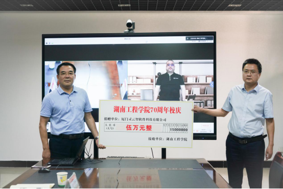 深化产教融合、助力人才培养,在学校建校70周年之际,厦门灵云智软件科技有限公司向学校捐赠5万元,用于学生奖学金。9月15日上午,厦门灵云智软件科技有限公司捐赠仪式在E307会议室采用线上云端的方式举行,学校党委书记陈岳堂出席并发表致辞,厦门灵云智软件科技有限公司负责人薛敏剑,计算机与通信学院(人工智能产业学院)领导班子、网络信息与现代教育技术中心负责人、教师代表参加仪式。仪式由学院院长张细政主持。