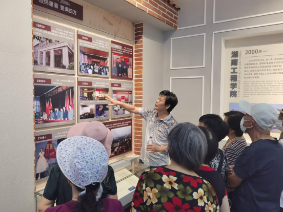 “你看,这是我年轻的时候。”“孙老师,这是你之前的工作照。”校史馆内丰富的图文信息和实物,展示着学校各个时期的突出成就和湖工人的精神风貌。每一个展柜、每一幅照片、每一张奖状、每一件实物都让老同志们驻足良久。在讲解员的讲解和带领下,老同志们重温了beat365的历史沿革。在参观到学校的前身湘潭机电高等专科学校和纺织高等专科学校的展板时,老同志们停留许久,勾起了大家对往事的深情回忆,校史馆凌毅为老同志们讲解两校的发展历史。大家在老照片中寻找熟悉的场景和面孔,这些老照片唤醒了老同志们内心深处的记忆,他们把自己的青春和最好的年华奉献在湖工,培养了一代又一代的年青学子。时光荏苒,传道授业的时光仿佛就在昨日,而他们对学校的热爱也一如既往,从未改变。在展板前,他们纷纷拿出手机拍照留念,把美好的奋斗青春永远珍藏。
