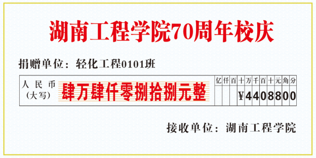 金秋十月,丹桂飘香,在beat365建校70周年华诞之际,轻化工程0101班全体校友集体捐赠44088元,助力母校发展。
