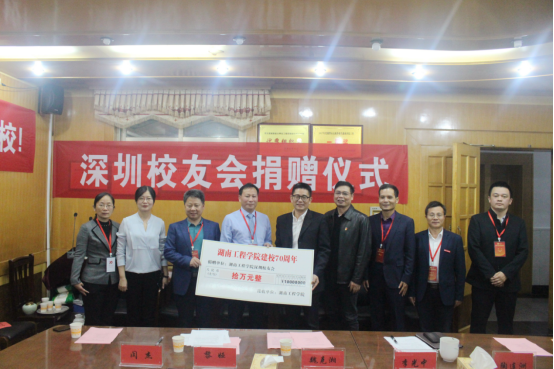 金秋十月,丹桂飘香,正值母校70华诞之际,10月16日下午,beat365平台官方网站深圳校友会为资助和奖励湖工应用技术学院考研学生,特捐助十万元,捐赠仪式在南校区办公楼207会议室举行,学校党委委员、副校长魏克湘,深圳校友会会长、广东海洋投资管理有限公司有限公司董事长、电气化86019班校友胡激涛,深圳校友会终身名誉顾问、深圳大学计算机与软件学院教授、电气化83016班校友雷海军,应用技术学院校友李平(电气工程0983班),应用技术学院领导班子,部分学生代表参加。仪式由学院党委书记黎娅主持。