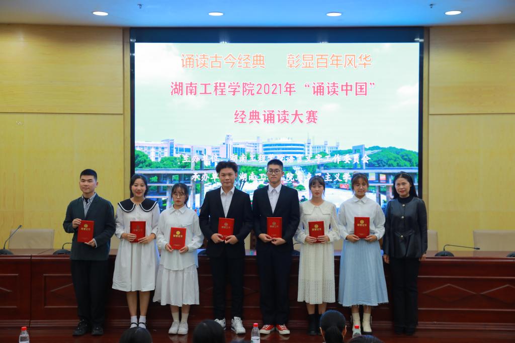 经评委们现场严格打分评定,大赛共评选出一等奖2项,二等奖5项,三等奖8项,优秀奖4项。其中设计艺术学院朱俊泰同学的个人朗诵作品《相信未来》,应用技术学院赖信、朱张杰等同学的集体朗诵作品《在中国大地上报道》获一等奖。一等奖获得者将推荐参加湖南省经典诵读大赛。