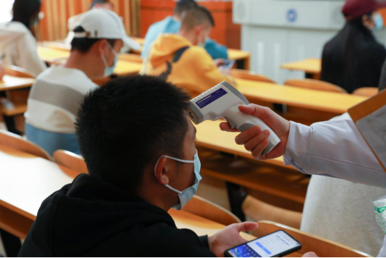 临时观察教室里,同学们间隔1米隔位就坐。“各位同学要时刻注意自己健康码情况,一旦出现发热、干咳、乏力、咽痛、嗅(味)觉减退、腹泻等症状要及时就医……”医务人员对同班学生、任课教师进行健康风险告知,校防控办联系湘潭市第一人民医院来校开展核酸检测,处置后护送至相应寝室进行健康监测。