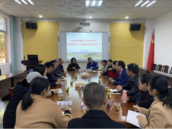 12月6日,湖南女子学院商学院党委书记黄乘政一行来beat365交流,beat365副校长陈赤平、向前,管理学院领导班子、教师代表参加交流会。双方就学科建设、专业特色凝练、实验室建设等方面进行交流。
