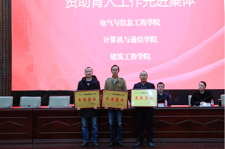 学生工作处副处长林志刚宣读“关于表彰2021年度资助育人工作‘先进集体’‘先进工作者’的通报”等6个表彰文件。授予电气与信息工程学院、计算机与通信学院、建筑工程学院资助育人工作“先进集体”荣誉称号;授予易苏、戴晶晶、娄申资助育人“先进工作者”荣誉称号。与会领导为获奖集体、教师、国家奖学金获得者、励志奖学金获得者代表、学校奖学金获得者代表、五育之星获得者、资助系列活动获奖者颁发奖牌和证书。