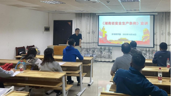 校保卫处处长叶险峰带领教职工学习新修订的《湖南省安全生产条例》(以下简称《条例》),他从个人监督自查、明确安全责任、强化安全意识、提升安全技能等方面说明了安全的重要性,同时结合校园内外的相关案例进行解析,将《条例》内容与实际案例紧密结合,让参训人员掌握了《条例》的精髓与要求。