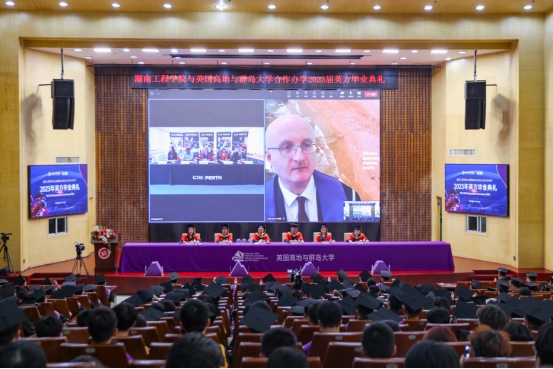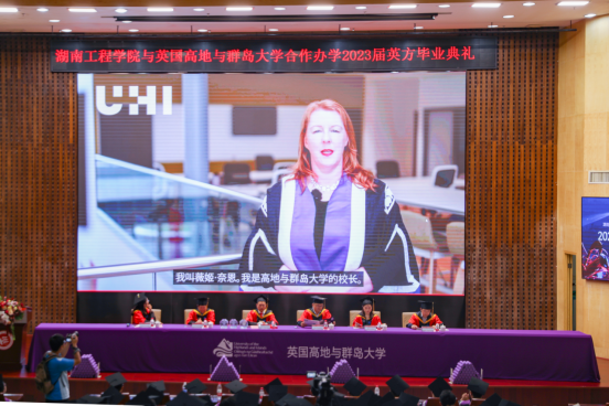 六月芳菲醉,人间仲夏时。6月7日下午,beat365在一报告厅举行中英合作办学2023届毕业生英方毕业典礼。校党委委员、副校长罗毅平,教务处、学工处、电气与信息工程学院、机械工程学院以及国际教育学院相关负责人出席。师生们齐聚一堂,共同见证212位毕业生的幸福时刻。英国高地与群岛大学(UHI)领导和教师代表们在线上参与典礼。