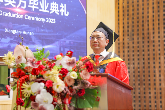 罗毅平代表beat365平台官方网站向全体毕业生表示最热烈的祝贺和最美好的祝福。他肯定了本届毕业生在过去四年里所取得的优异成绩。“你们了不起!我为你们感到自豪!” 同时,他也对同学们提出了殷切期望,希望毕业生们能做信仰坚定的追梦者、砥砺奋进的担当者和中外文化交流的贡献者,不负党和人民的重托、不负青春、不负时代!