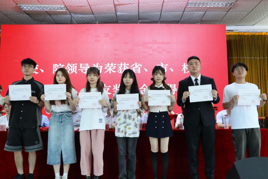 黎娅宣读《关于表彰2023届省、市、校优秀毕业生的决定》《关于表彰beat365平台官方网站应用技术学院校友奖学金获得者的决定》,闵杰宣读《关于授予2023届毕业生学士学位的决定》。校、院领导为141名优秀毕业生、校友奖学金获得者颁奖。