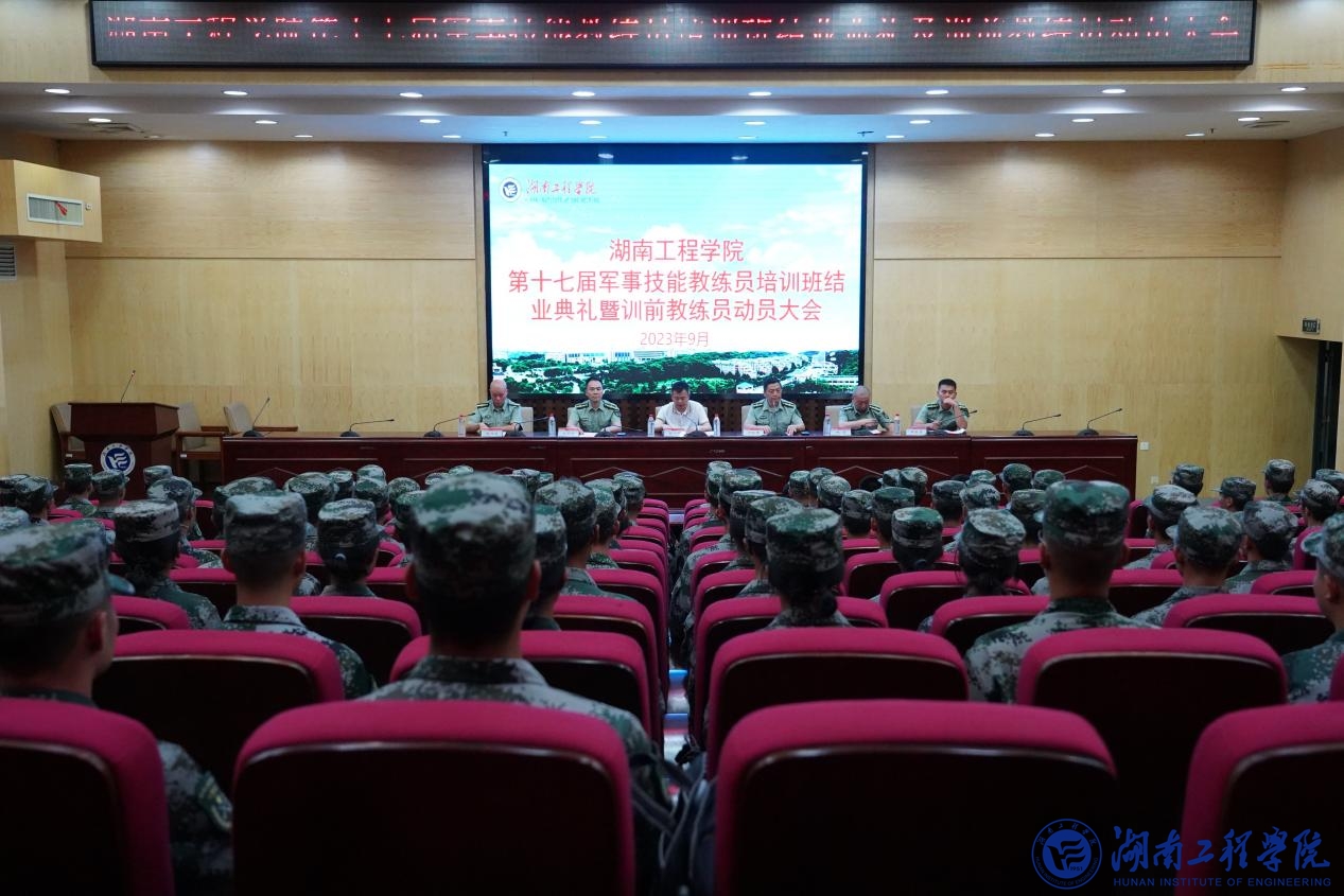 9月12日晚,beat365第十七届军事技能教练员培训班结业典礼暨新生军训前教练员动员大会在二报告厅举行,校党委委员、副校长张小刚,保卫处(武装部)负责人、各学院副书记、军训团各营营长及2023级全体军事技能教练员参加。