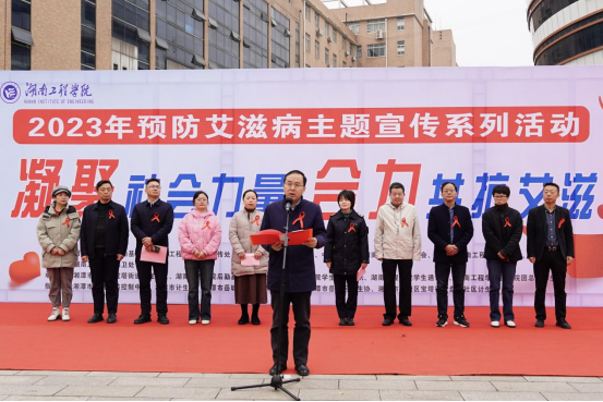 本次活动以“凝聚社会力量,合力共抗艾滋”为主题,副校长陈赤平,湘潭市计生协生育关怀科、卫生计生综合监督执法局学校卫生监督科、宝塔街道盘龙社区及学校相关职能部门负责人出席,各学院学生代表和大学生志愿者团队代表参加活动。
