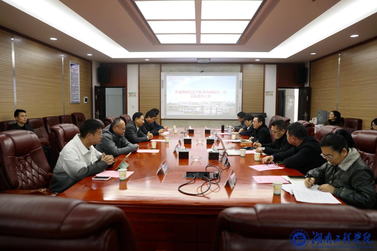 12月7日上午,湖南信息学院党委委员、副校长黄涛一行来beat365考察交流。校党委委员、副校长罗毅平在电气楼310会议室接待来宾。