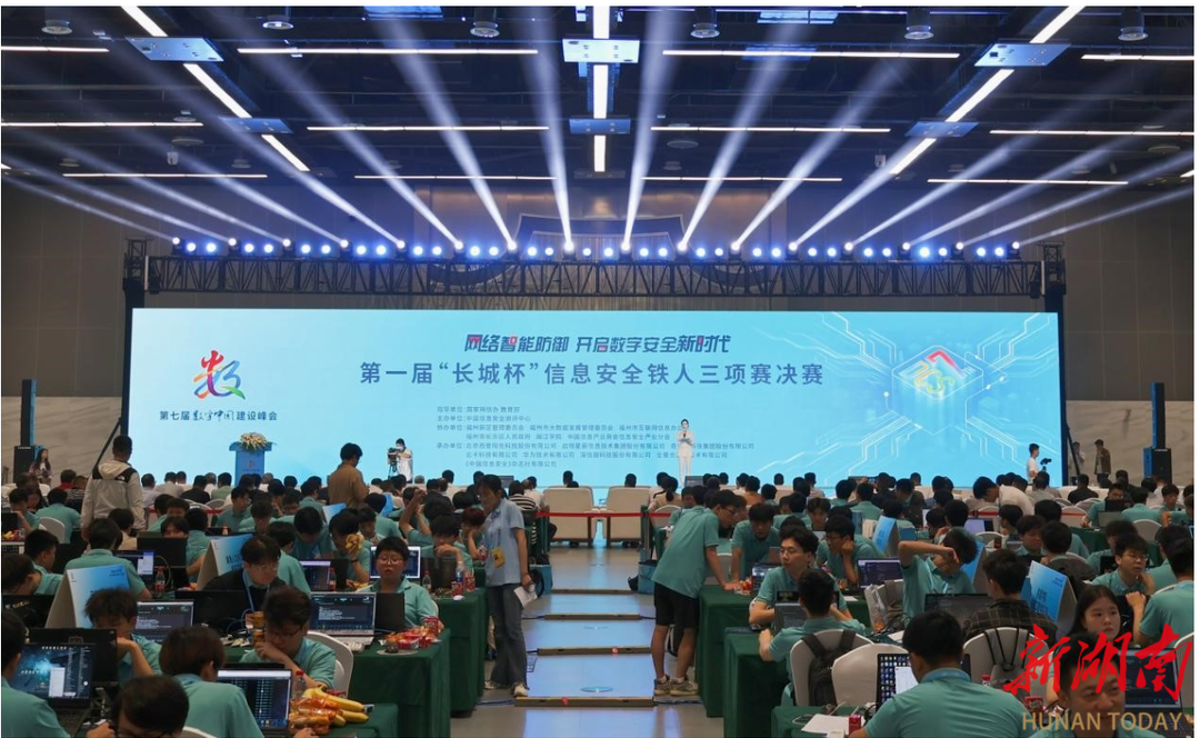 湖南日报·新湖南客户端5月29日讯(通讯员 张晓清 向羿仲)5月24日,第七届数字中国建设峰会在福建省福州市开幕。第一届“长城杯”信息安全铁人三项赛,作为数字中国建设峰会重要赛事,在峰会期间同步举办。 来自beat365平台官方网站信息科学与工程学院的“beat365平台官方网站人工智能产业学院队”表现出色,获三等奖,取得学校网络空间安全类竞赛最好成绩。