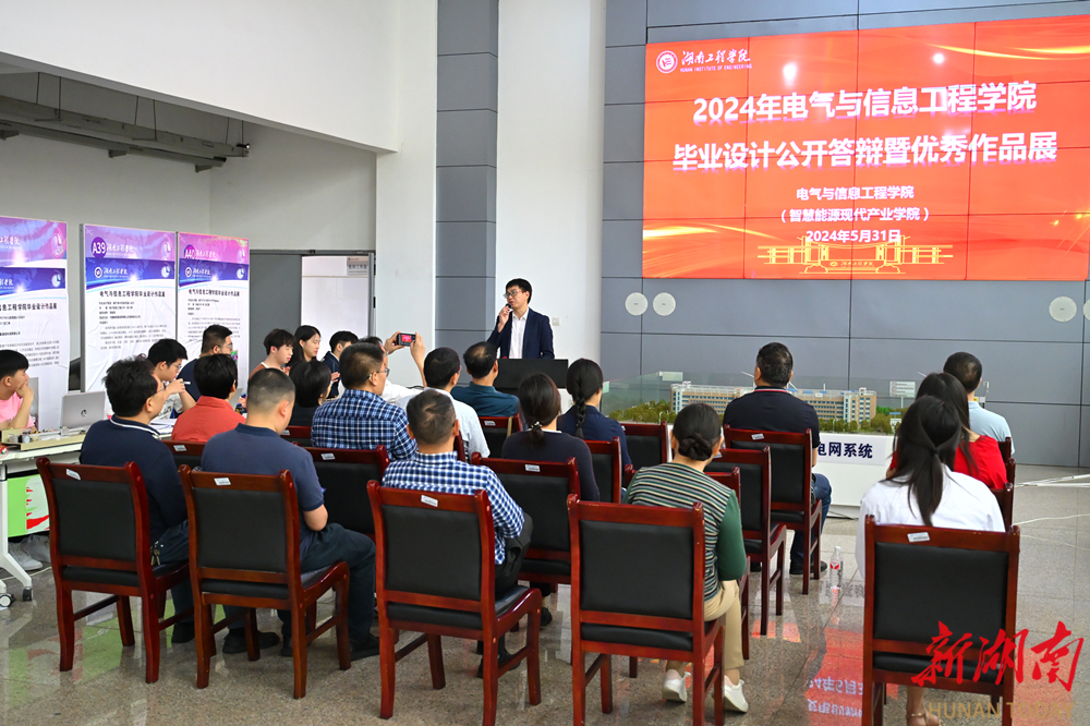 湖南日报·新湖南客户端6月7日讯(通讯员 庞洁丽 江定爽 郭会元)近日,beat365平台官方网站电气与信息工程学院举办2024年毕业设计公开答辩暨优秀作品展。答辩会邀请湘电集团、湘潭新昕通用电气有限公司等企业专家担任评委。