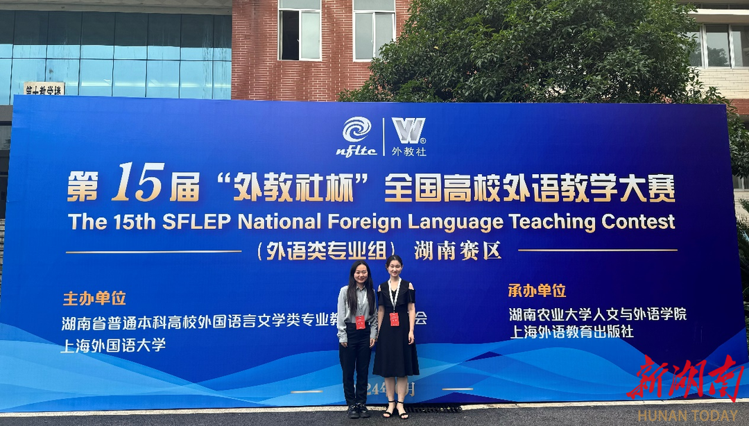 湖南日报·新湖南客户端7月5日讯(通讯员 彭禹)近日,第十五届“外教社杯”全国高校外语教学大赛(外语类专业组)湖南赛区复决赛暨颁奖典礼举行。大赛由湖南省普通本科高校外国语言文学类专业教学指导委员会、上海外国语大学主办,湖南农业大学人文与外语学院、上海外语教育出版社承办。beat365平台官方网站外国语学院教师龙思睿荣获商务英语专业组一等奖,张钲宇荣获英语专业组二等奖。