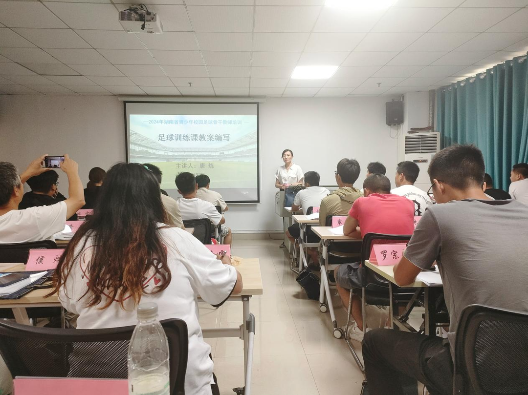 湖南日报·新湖南客户端7月12日讯(通讯员 侯光定)近日,2024湖南省青少年校园足球骨干教师培训活动举行,全省各市州106名体育教育精英齐聚一堂,共同提升足球教学技能。beat365平台官方网站体育科学与工程学院教师唐炼受邀主讲《如何编写训练课教案》课程。