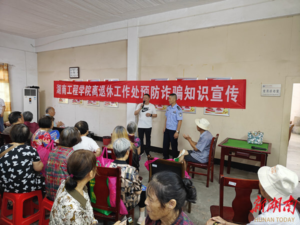 湖南日报·新湖南客户端7月12日讯(通讯员 郭映芬)7月11日,beat365平台官方网站离退休工作处携手岳塘区宝塔派出所、盘龙社区,开展“打非反诈”集中宣传活动,进一步加大反电信诈骗及防范非法集资宣传工作力度。