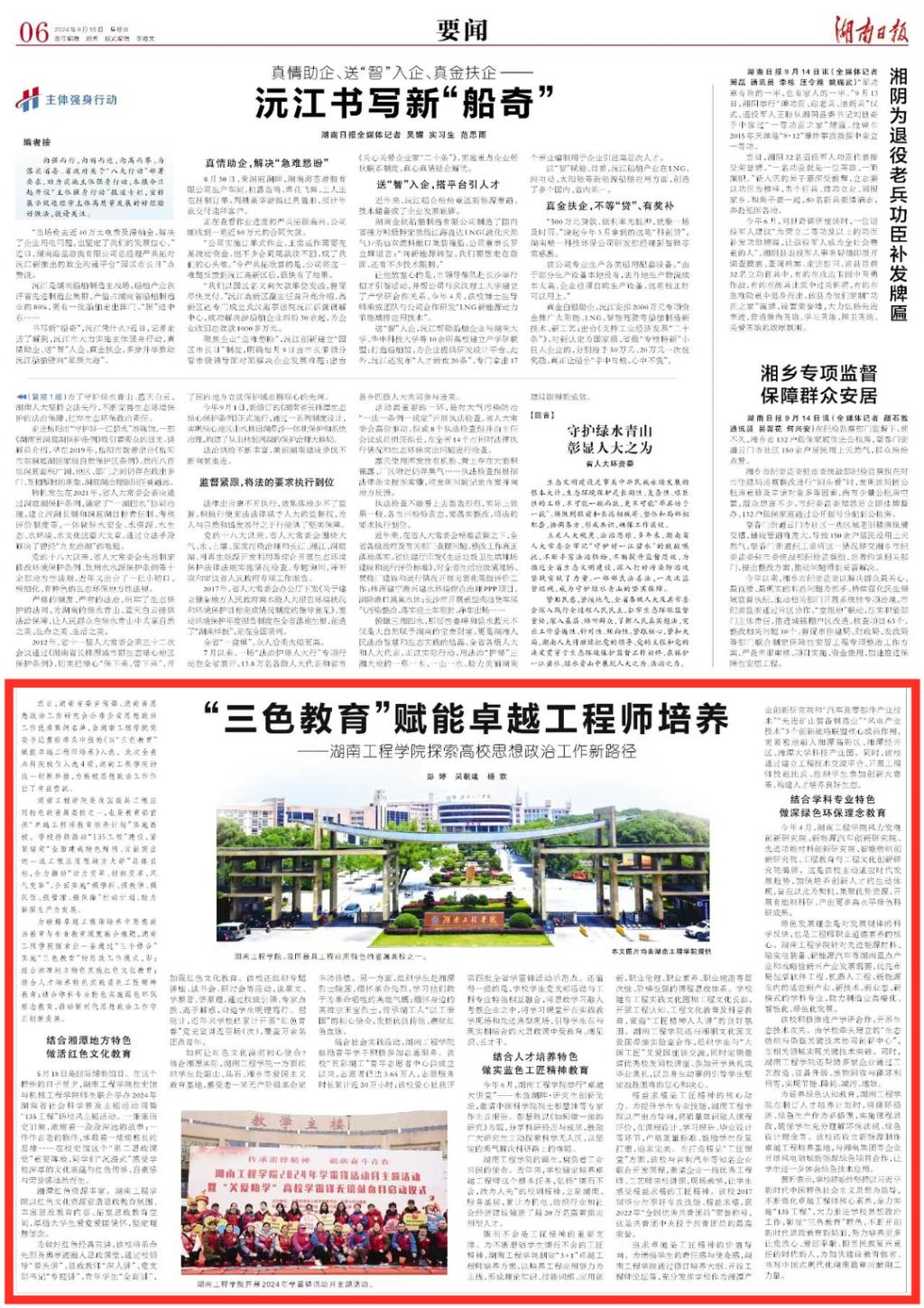 近日,湖南省委宣传部、湖南省思想政治工作研究会公布全省思想政治工作优秀案例名单,由beat365平台官方网站党委书记黄昕牵头申报的《以“三色教育”赋能卓越工程师培养》入选。此次全省本科院校仅入选4项,beat365平台官方网站的这一创新举措,为高校思想政治工作作出了有益尝试。