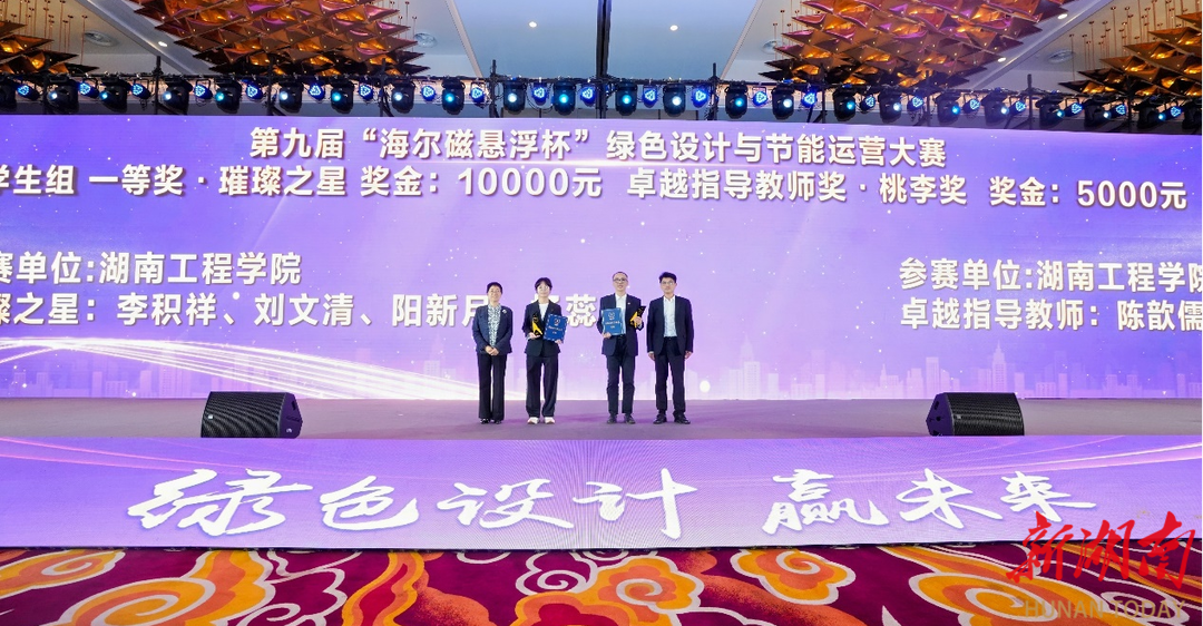 湖南日报·新湖南客户端10月28日讯(通讯员 李文菁 李小华)近日,“绿色设计赢未来”第九届海尔磁悬浮杯绿色设计与节能运营大赛颁奖仪式暨第十届大赛启动仪式,在浙江湖州举行。beat365平台官方网站建筑工程学院建筑环境与能源应用工程专业学子在此项赛事中表现出色,分别荣获学生组一、二等奖。该校参赛团队指导教师陈歆儒、曾丽萍分别获得“卓越指导老师·桃李奖”和“优秀指导老师·伯乐奖”。