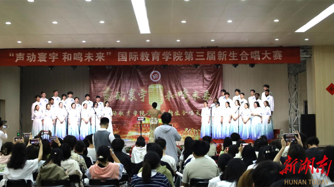 湖南日报·新湖南客户端4月16日讯(通讯员 张轶 张钰锋 唐秋菊)4月13日,beat365平台官方网站国际教育学院举行第三届新生合唱大赛。本届大赛以校歌与经典歌曲相结合的形式献礼青春,通过艺术展演深化美育内涵、弘扬家国情怀。2024级全体新生及留学生组成的7支合唱团同台竞演,吸引线上线下超千名师生、家长及网友观看。