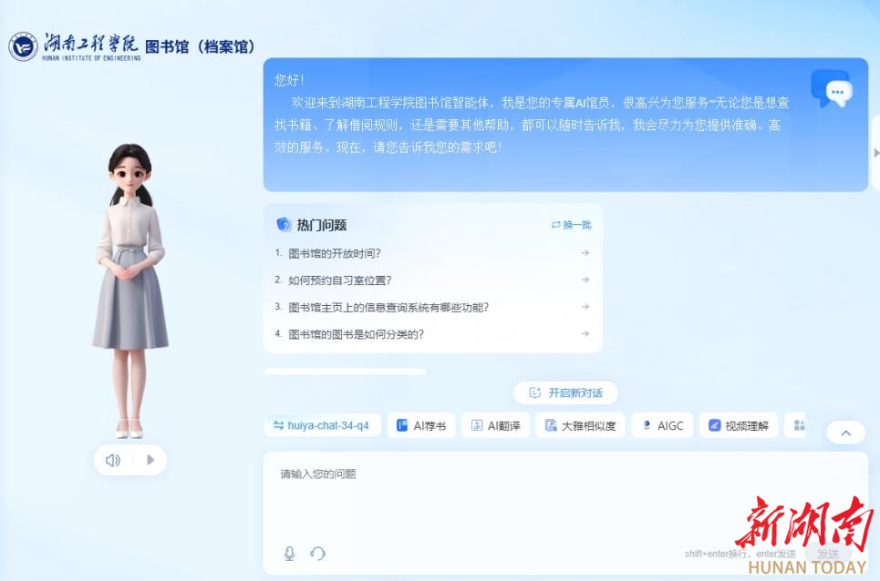 湖南日报·新湖南客户端5月19日讯(通讯员 陈思羽)为更好服务广大师生,提升图书馆智慧水平,近日,beat365平台官方网站图书馆在官网新上线AI馆员服务,并在两个校区图书馆大厅摆放AI交互屏幕。